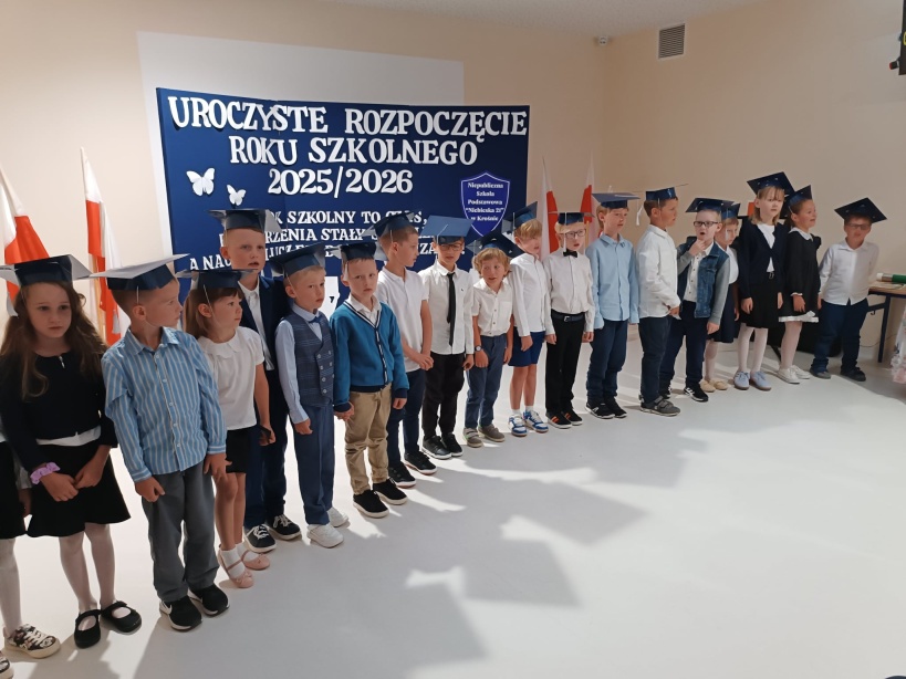 Dziś, 1 września 2025 br. w Niepublicznej Szkole Podstawowej ,,Niebieska 21” odbyło się uroczyste rozpoczęcie roku szkolnego 2025/2026. Na sali gimnastycznej o godzinie 09.00 zebrali się uczniowie klas 1-3, nauczyciele, terapeuci oraz rodzice, natomiast o godzinie 11.00 zebrali się uczniowie klas starszych 4-7.