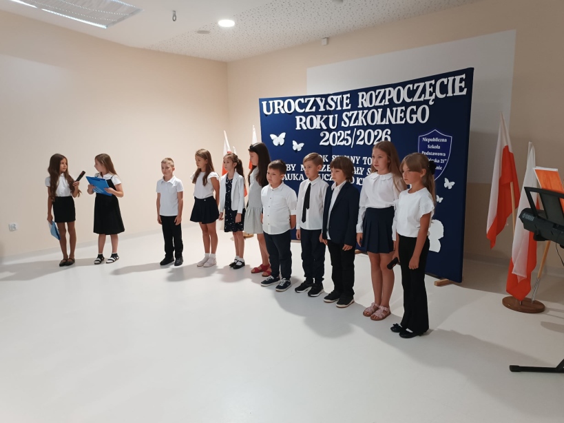 Dziś, 1 września 2025 br. w Niepublicznej Szkole Podstawowej ,,Niebieska 21” odbyło się uroczyste rozpoczęcie roku szkolnego 2025/2026. Na sali gimnastycznej o godzinie 09.00 zebrali się uczniowie klas 1-3, nauczyciele, terapeuci oraz rodzice, natomiast o godzinie 11.00 zebrali się uczniowie klas starszych 4-7.